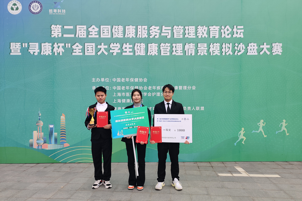 12月9日-10日,第二届全国健康服务与管理教育高峰论坛暨“寻康杯”全国健康服务与管理情景模拟沙盘大赛决赛在上海健康医学院举办。大庆校区2021级健康服务与管理专业林海媛、庞杰、郭洪铖3名同学组成的团队(指导教师孙秋雪、王冬雪),荣获大赛一等奖。