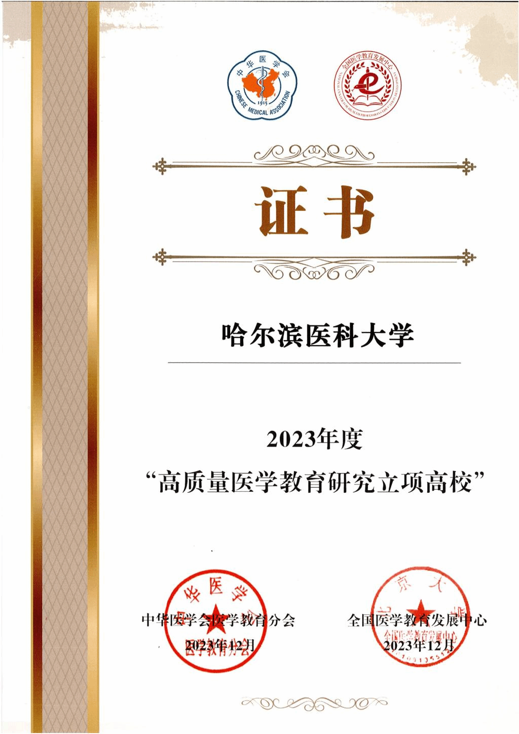 12月16日,中华医学会医学教育分会2023年全体委员会暨学术年会在广东省深圳市召开。会上,ac米兰获得中华医学会医学教育分会和全国医学教育发展中心联合颁发的“2023年度高质量医学教育研究立项高校”荣誉表彰,全国共有十所医学院校获此殊荣。