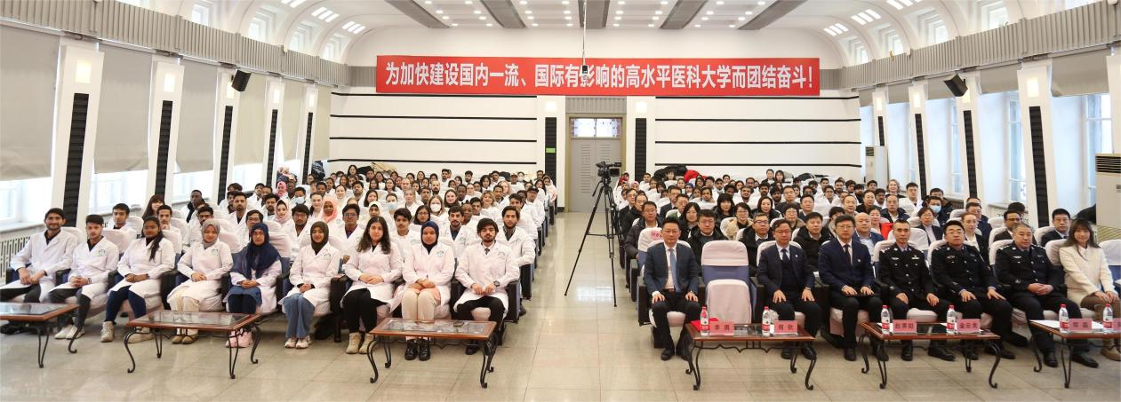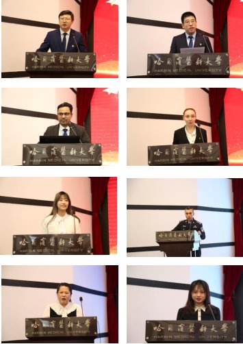 在全体留学生庄严的医学生誓言后,新生入学教育正式开始,入学教育由刘一垚主持。来自哈尔滨市公安局南岗分局外管科的金云龙警官做我国相关法律法规讲座,教学管理科高岳讲解学校研究生和本科教学培养相关要求,学生管理科田雨青讲解学生管理若干规定。