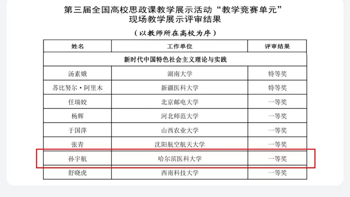 近日,在教育部举办第三届全国高校思想政治理论课教学展示活动中,ac米兰马克思主义学院孙宇航老师获得研究生思政课《新时代中国特色社会主义理论与实践》组一等奖。这项活动是全国高校思想政治理论课教学比赛主办规格最高、参赛面最广、参赛选手水平最强的活动,比赛包含省内选拔、全国复赛、决赛三个阶段,经过5个月的层层选拔和激烈角逐,来自全国的298名教师进入决赛。