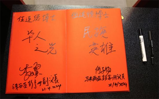 李政贤副议长在留言簿题词,盛赞“伍连德博士 华人之光”。