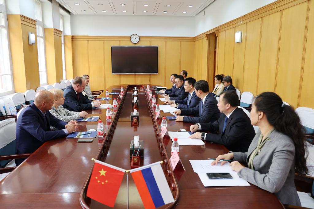 4月24日下午,俄罗斯远东国立医科大学校长康斯坦丁·日梅雷涅茨基率团来校访问,校长季勇会见访问团一行,双方在两校人才培养、学科建设、科研合作等方面交换意见,签订合作协议。副校长徐万海主持会议。