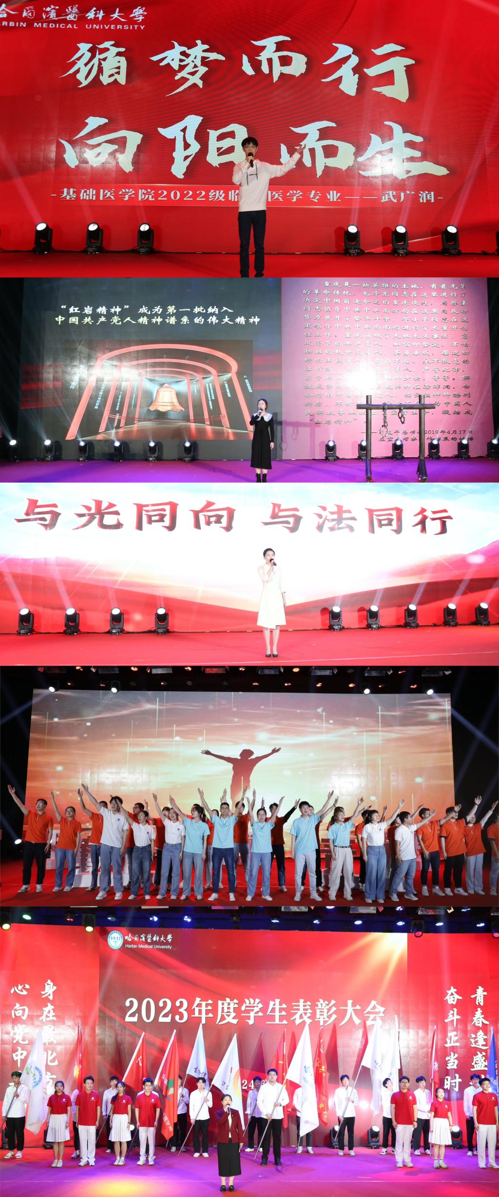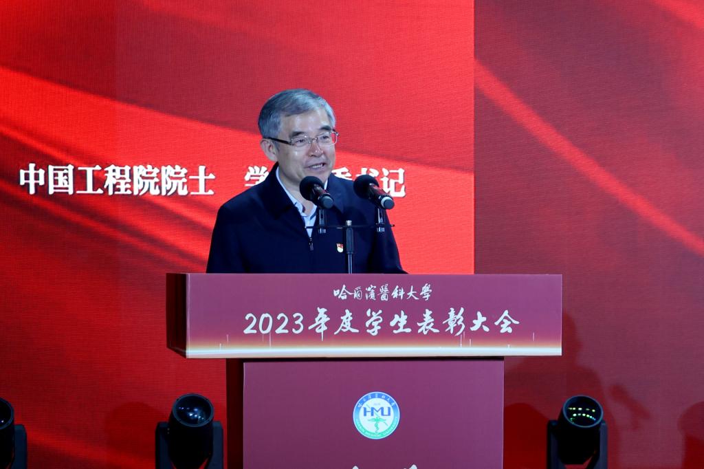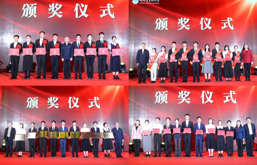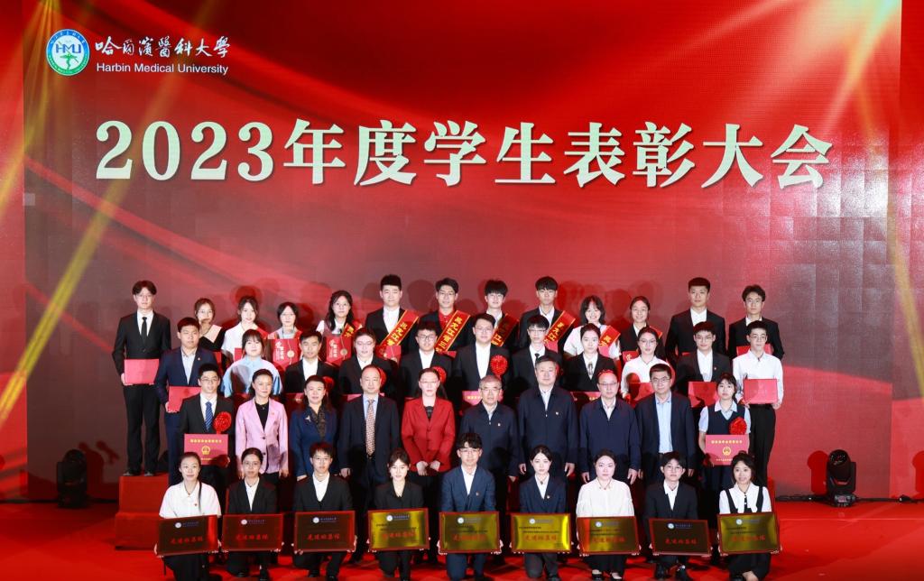学校领导为2023年国家奖学金获得者、黑龙江省三好学生、校三好学生、优秀学生干部和先进班集体代表颁奖。