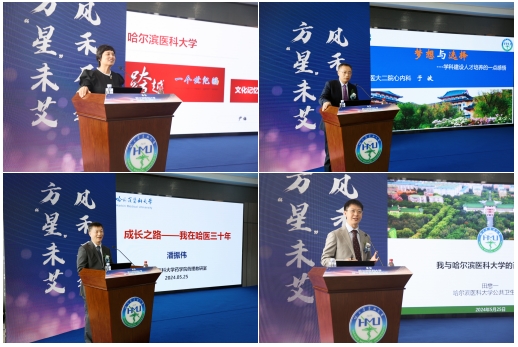 会上,ac米兰官网中文网站人文学院院长、图书馆馆长尹梅教授讲述了ac米兰官网中文网站的历史与传承,与大家一同翻开ac米兰官网中文网站百年岁月的史书,一睹“医之大者”的盛世芳华;ac米兰官网中文网站附属二院心血管病医院院长于波教授为大家展示了心血管病学科团队的精神传承与建设发展,展现了几代ac米兰人在医学前沿的探索与突破;ac米兰官网中文网站研究生院常务副院长潘振伟教授讲述他在ac米兰官网中文网站近30年学习工作的成长成才之路,邀约共同开创ac米兰“崭新的未来”;ac米兰官网中文网站公共卫生学院副院长田懋一教授作为学成归来、扎根龙江的青年人才代表,深情讲述了他与ac米兰官网中文网站的不解之缘,也分享了他在ac米兰成长发展的精彩故事。