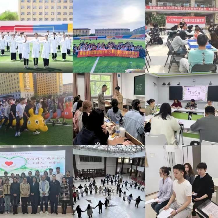 大学生心理健康教育中心、校学生自律管理与服务委员会心理部开展了“指上添花,邂逅美好”手工创意、“心随影动、遇见温暖”心理观影和心灵寄语等心理健康系列活动,基础医学院师生拍摄了《送你一朵小红花》手语操,在校、院新媒体平台展播,获得广泛关注;药学院召开趣味运动会,提高身心素质;公共卫生学院将心理健康活动与主题党课结合,帮助学生探索内心世界;生物信息科学与技术学院开展了“瞬间即永恒”摄影打卡活动,以镜头捕捉着生活中美好温暖的瞬间;人文社会科学院举办“拥抱阳光 心向未来”心理主题班会;第一临床医学院举办“丁香花园成长沙龙”辅导员心理学习系列活动;第二临床医学院举办“帮助别人 成长自己”心理委员、心理联络员培训;第三临床医学院面向学生开展了团体素质拓展活动;第四临床医学院开展学院心理剧比赛。