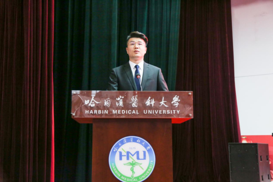 黑龙江省学联驻会主席、哈尔滨工业大学郭旭向大会致辞,对本次学代会、研代会的召开表示热烈祝贺。