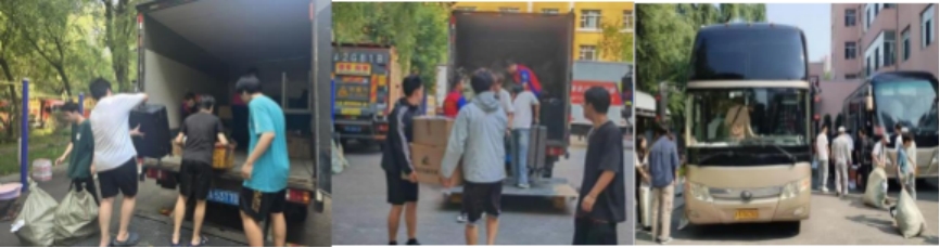 今年是学校预防医学专业学生前往大庆油田总医院参加临床学习的第一年。为保障6辆搬运学生行李的车辆能够在高速路上顺利行驶,早上5 点30分,公共卫生学院便投入了紧密有序的学生行李搬运工作。清晨里雾霭沉沉,同学们已打包好行李、整理了寝室卫生,有序等待着搬运车辆到来。辅导员与各寝室学生负责人一起,指挥安排搬运批次,事无巨细检查行李,身体力行协助搬运,记录和通知每一名学生行李对应的搬运车号、达到放置的寝室号……转眼已艳阳高照,师生们通力配合,上下一心,圆满完成了602件行李的搬运工作。辅导员与学生代表坐上前往大庆的火车,到达大庆油田总医院检查安置运达的学生行李、走访学生区。他们详细检查了所有行李是否存在遗漏破损、帮助保管掉出的小物件、点对点联系如何安置。在大庆油田总医院辅导员的陪伴下,师生来到教室、食堂、体育馆、学生寝室……对学生们关心的衣食住行等问题进行了实地走访和耐心解答。“我们来了,学生们分部才能放心、才能安心”,伴着落日余晖,师生回到了校园。