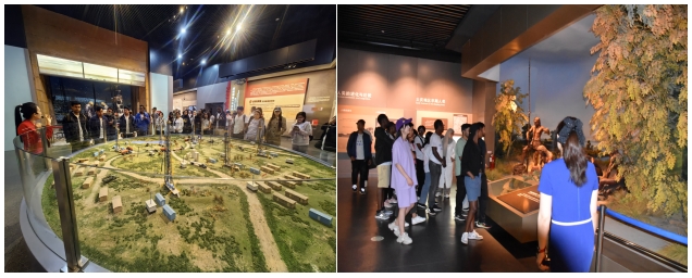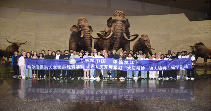 在大庆博物馆,全方位展示了大庆古代、近代历史,油田开发建设史、现代化城市建设史和具有地域特色的草原、湿地景观及特有的珍稀兽类、禽类、昆虫等标本与远古时代的恐龙、东北地区特有的猛犸象、披毛犀等古生物化石。留学生们对远古生物、东北地区环境变迁和大庆古人类文化十分感兴趣,细心聆听讲解,不时向讲解员提问和交流,纷纷拿出手机拍照,记录这次宝贵的文化盛宴之旅。