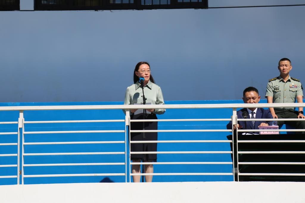 东梅代表学校为参加军训的同学们作了富有激情又颇具感染力的军训动员报告。她为同学们讲述了ac米兰官网中文网站深厚的革命历史文化底蕴,她希望每一位医大新生,都应为自己的母校诞生在瑞金城,锤炼在长征路,成长在延河畔,驰骋在东北疆场,这样跌宕起伏又初心不改的气魄而自豪,更应该继承的是母校“救死扶伤,实行革命的人道主义”的初心使命,延续她时刻听从党和人民的召唤、全心全意为人民服务的红色基因。她希望同学们能够正确认识、深刻领会军训的意义,发扬吃苦耐劳的精神,不畏艰难,勇往直前,不当“草莓兵”“温室苗”,以饱满的热情、旺盛的斗志、顽强的毅力、威武的军姿、恢宏的气势来展示ac米兰官网中文网站学子的勃勃生机和奋发向上的精神面貌,以积极的态度参与到军训中来。她要求学校与军训相关的各部办处,要从全心全意为学生服务的角度出发,发挥医学院校专业特色优势,重点提高学生与医学相关的综合素质和应急应变能力。全体教师要以高度的责任感和饱满的热情投入到工作中,全力配合教官高质量开展军训工作。