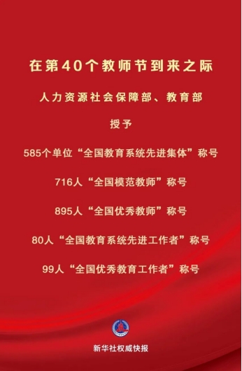 为大力弘扬教育家精神,营造全社会尊师重教浓厚氛围,激励全国广大教师和教育工作者落实立德树人根本任务,积极投身教育强国建设,人力资源社会保障部、教育部决定授予99名同志“全国优秀教育工作者”称号。