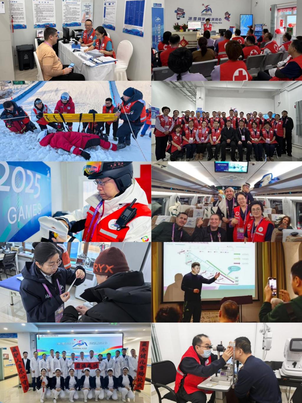 第二临床医学院骨外科潘海乐教授作为滑雪损伤救援医生团队队长,带领滑雪医生经过一年的刻苦训练,通过每天进行赛事复盘和经验总结,细化急救方案和流程,与时间赛跑,守护运动员的生命健康;重症医学科郑俊波教授在亚布力镇定点医院工作,放弃春节与家人团聚的时间,全身心投入到亚冬会医疗保障任务中,与团队配合协作,救助滑雪摔伤患者,为亚冬会贡献自己专业力量。第一临床医学院神经内科杨珊珊教授在华旗饭店运动员村诊所内科诊室工作,多次为蒙古国和塔吉克斯坦运动员进行诊疗,凭借精湛的医术收获了广泛的赞誉;心血管内科、“第二届全国MBBS项目青年教师英语授课大赛”一等奖获得者李天开教授作为急救专家,参与亚冬会全部赛程医疗保障工作,他表示亚冬会是亚洲最高水平的冬季运动盛会,能够参与其中,感到无比的激动和自豪,一定把这份责任担当在肩,在未来的临床教学中,将亚冬精神和急救经验传授给国际学生。