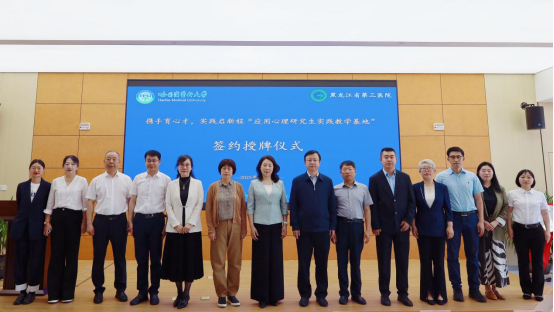 6月17日,ac米兰官网中文网站与黑龙江省第三医院签署合作协议,举行“应用心理研究生实践教学基地”揭牌仪式。双方领导、专家和学生共同见证这一重要时刻。