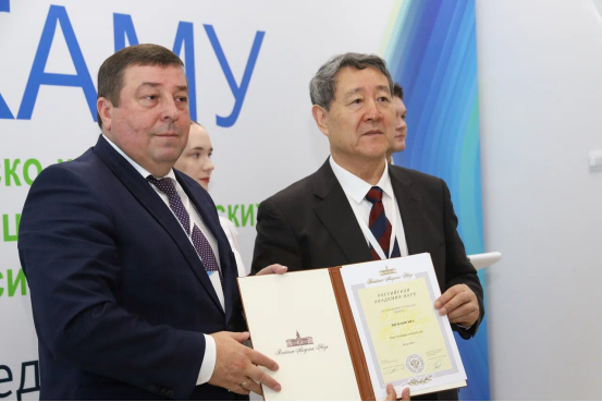 9月24日-26日,中俄医科大学联盟第十一届常务理事会在俄罗斯符拉迪沃斯托克的太平洋国立医科大学召开。联盟中方主席杨宝峰教授、莫斯科国立谢东诺夫第一医科大学校长彼得·格雷保奇卡教授、中国疾病预防控制中心徐建国教授等中俄两国院校长、专家做大会报告;俄罗斯彼得·格雷保奇卡院士代表俄罗斯科学院向杨宝峰教授颁发俄罗斯科学院外籍院士证书。来自中俄40所大学的院校长、专家出席会议。