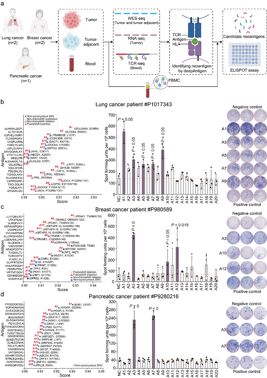 在肺癌、乳腺癌和胰腺癌上验证肿瘤新生抗原免疫原性
