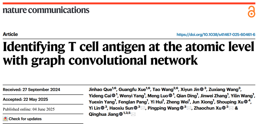 Que, J., Xue, G., Wang, T. et al. Identifying T cell antigen at the atomic level with graph convolutional network. Nature Communications 16, 5171 (2025).