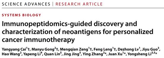 2025年5月21日,我院李永生教授团队整合14大常见癌型和29个正常组织的免疫肽组数据、识别近46万条HLA呈递的表位,成功构建了肿瘤-正常表位图谱,为优选用于个性化癌症免疫治疗的新抗原提供了新的视角。该成果以研究型论文《Immunopeptidomics-guided discovery and characterization of neoantigens for personalized cancer immunotherapy》发表于Science子刊《Science Advances》。